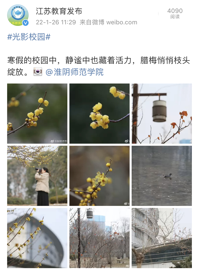 【江苏教育发布】寒假校园中腊梅悄悄枝头绽放