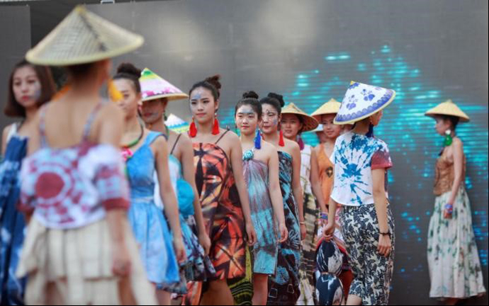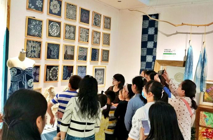 扎染古称扎缬、绞缬、夹缬和染缬,是中国民间传统而独特的防染工艺。淮安扎染以古代传统印染工艺为基础,以针带笔,扎缬染色,采用纯棉白布制作,发展至今,棉、麻、丝、缎等纯天然织物和皮革、木头均可制作。民间工匠总结数十种扎染手法,形成一整套独特的扎花,染色制作技艺。在共计25项的第七批市级非物质文化遗产代表项目名录中,淮师美院钱敏老师的扎染技艺是其中之一。
