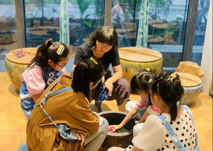 植物染需要沉淀与发酵,手艺人亦是如此,在钱敏老师日复一日的坚持与一点一滴的积累沉淀下,植物染绽放出了美丽的色彩。2020年,钱敏老师被评为江苏省乡土人才“三带”新秀能手;2022年,被挂牌为淮安市及清江浦区淮印时光新阶层实践创新基地“工坊空间”。钱敏老师团队所主持的《蓝印坊——扎染活态非遗传承践行者》项目,荣获共青团中央第九届“创青春”中国青年创新创业大赛优秀奖、第八届中国国际“互联网+”大学生创新创业大赛暨江苏省大学生创新创业大赛二等奖、第十二届“挑战杯”江苏省大学生创业计划竞赛铜奖、2022年“让全国看见你”青年创新创业项目路演暨“创青春”江苏青年创新创业大赛三等奖、淮安市青年创新创业大赛三等奖。