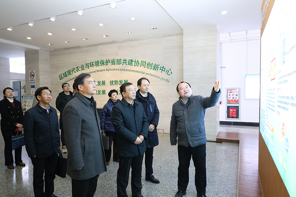 图为岳岭一行参观区域现代农业与环境保护省部共建协同创新中心。记者 唐瑀 摄