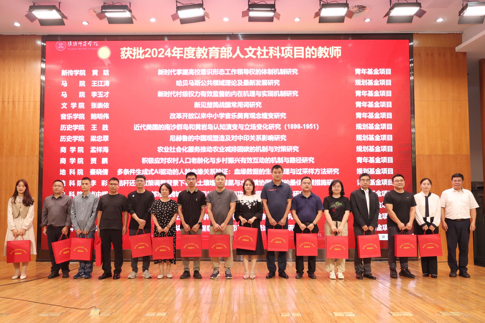 会议表彰了获批本年度国家社科基金、教育部人文社科项目,以及省社科基金的32位项目负责人,赵宜江代表学校向这些老师表示热烈的祝贺。