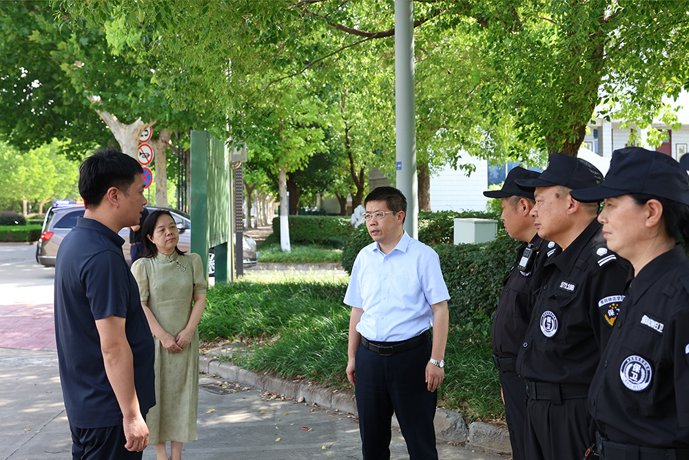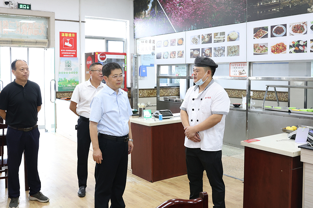 在交通路校区餐厅,赵祥祥仔细查看了食品原料的采购储存、加工操作流程及餐具清洁消毒制度执行情况,并强调要切实保障“舌尖上的安全”。在长江路南门值班岗,他希望保安人员坚持岗位职责,强化安全意识,持续做好假期校园安保工作。