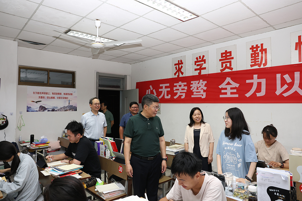 在走访过程中,校领导还看望了正在备战全国大学生电子设计竞赛和第18届全国三维数字化创新设计大赛的师生,赵宜江勉励他们:“执着与热爱是青春最亮的底色”,鼓励大家赛出风格、赛出佳绩。在法学院、马克思主义学院等考研自习室,赵祥祥鼓励正在备考的学生们:“奋斗的青春最美丽”,要科学规划时间,保持平和心态,为梦想启航积蓄力量。