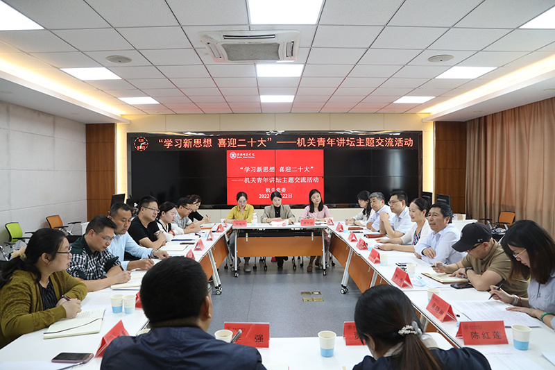淮师新闻网9月23日电(记者 贾夏)为进一步丰富学习形式、提升学习实效,推进学习型党组织建设,不断提高机关党员领导干部的政治判断力、政治领悟力、政治执行力,9月22日下午,机关 “青年讲坛”在长江路校区崇文楼2-209会议室开展“学习新思想 喜迎二十大”主题交流活动。机关党委书记王江明主持活动,机关部分党员代表参加活动。