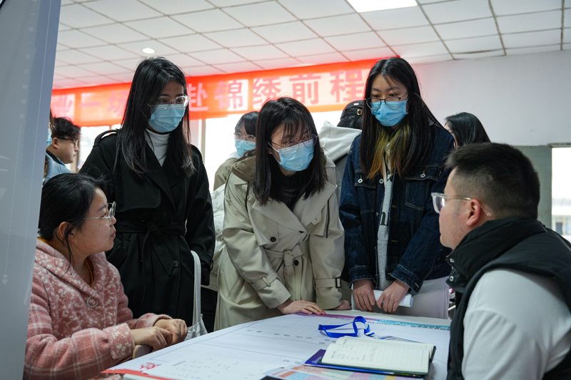 淮师新闻网3月21日电(记者 吕炜 褚云涛 窦佳慧)为贯彻落实党中央、国务院“稳就业”“保就业”的决策部署,日前,传媒学院携手yL23411永利官网登录招生与就业处、淮安市青商会开展“访企拓岗促就业”活动暨2023届传媒类毕业生供需洽谈会,活动在在弘文楼大厅举行。江苏金卫集团、江苏奇迹传媒有限公司、江苏蔚象文化传媒有限公司等近20家用人单位为毕业生提供近100个就业岗位,吸引200余名毕业生前来咨询。