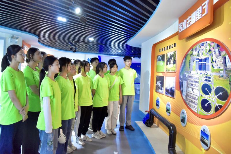 图为志愿者学习污水处理去向。记者 周宇欣 摄