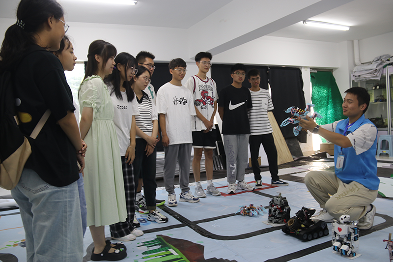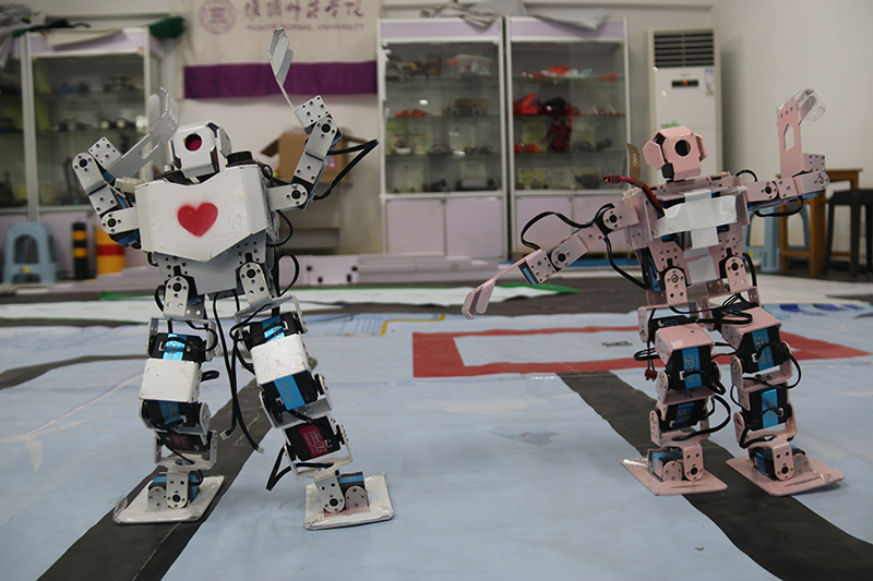 迎新当天,学院机器人创新团队特别拿出了他们在诸多学科竞赛中获奖的作品展现给新生。在报到现场,六只可爱的机器人跟随着音乐,在地面上表演着各种舞蹈动作,它们时而挥手,时而走动,时而翻跟头,吸引很多新生和家长驻足欣赏。展台上摆放着去年曾在国家级学科竞赛A类赛事中获得一等奖的智能车和一台无人机。此外,学院还通过海报、PPT等方式对机器人创新团队和C++程序设计团队的培训、比赛、获奖等内容进行了展示,很多新生对这些科技团队非常感兴趣,他们希望在未来能够加入其中,参加科技创新比赛,感受科技的无限魅力。