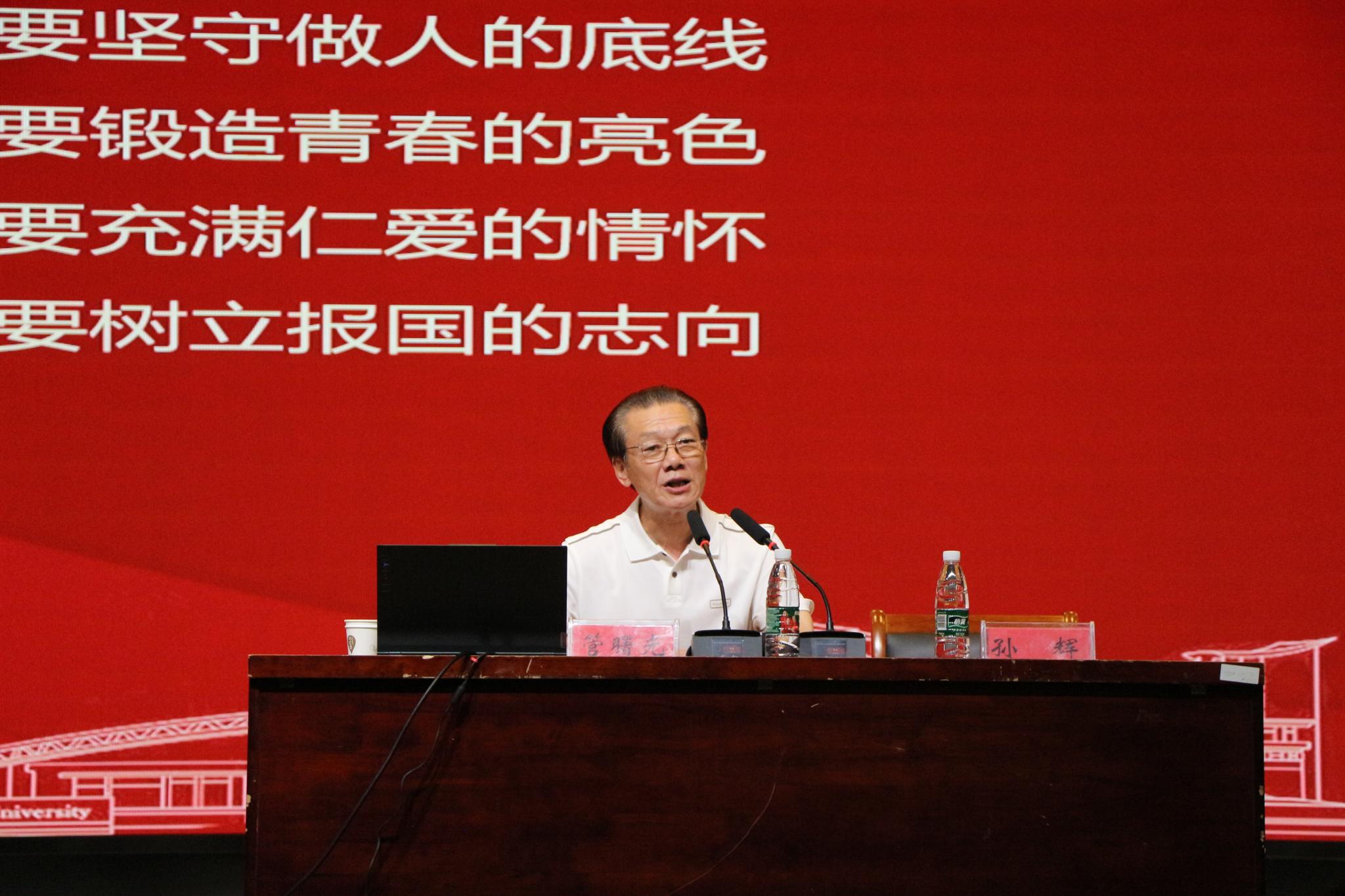 管曙光分别从“选择淮安,我们怎能不爱上她”“就读淮师,我们如何学有所成”“珍惜青春,我们怎样不负韶华”三个层面和全体新生分享了感悟。他从淮安拥有的全国历史文化名城、京杭运河之都、世界美食之都、全国交通枢纽、绿色生态高地、全国文明城市这六张名片讲起,介绍了淮安的历史风情、地理环境、美食文化和社会文明建设情况,引导同学们认识淮安、走进淮安、爱上淮安。他指出,各位大学生只要能坚守“五心”,即确立入学的初心、坚定进取的信心、秉持求知的真心、砥砺攻读的专心和永保不懈的恒心,就一定能走好在淮师求学的人生道路。管曙光结合自身的学习与工作经历对同学们提出了四点期望和要求,一要坚守做人的底线,二要锻造青春的亮色,三要充满仁爱的情怀,四要树立报国的志向。活动最后,他以毛泽东主席和周恩来总理的伟人事迹鼓励同学们读书修身,立志报国,永葆乐观向上的精神状态。