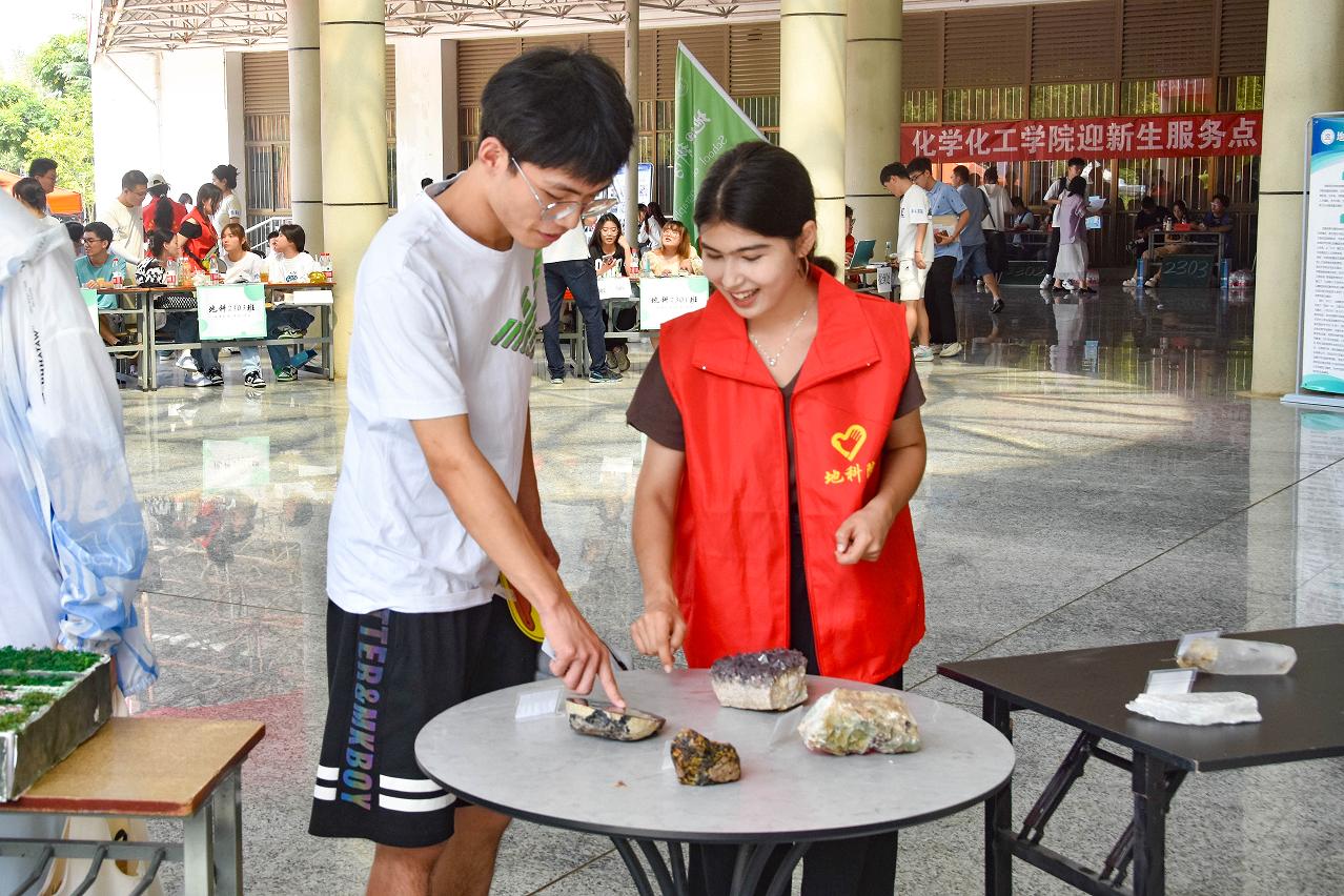 地科院丰富迎新形式,设计“新生萌动 栽下梦想的种子”特色活动,邀请新生从家乡带来植物种子,在“地理百花园”播种,希望小萌新们能扎根淮师,融入淮师,传承“坚守朴实 追求崇高”的淮师精神。同时希望新同学能像种子一样破士而出、茁壮成长,寄托了学院对新生的美好愿景和祝福。与此同时,新生报到点现场展示了专业特色作品,萌新们在赞叹学长学姐成绩的同时,也给自己增添了专业新动能。