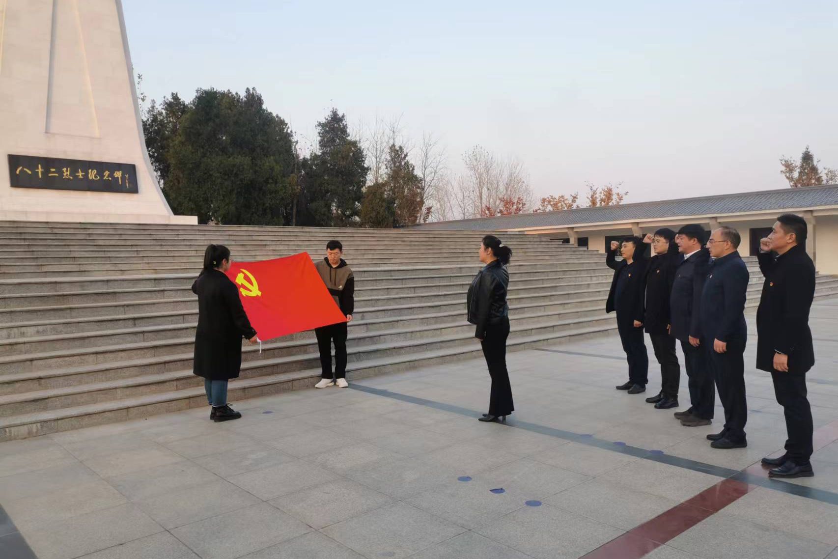 缅怀革命先烈,弘扬历史伟绩。在中华民族的抗战史上,有这样一支英雄的部队,82位勇士用生命诠释出来“生命不息,战斗不止”的精神,成为奋力谱写幸福新生活的奋斗底色。全体党员怀着对革命先辈的无限崇敬,在庄严肃穆的烈士纪念碑前重温入党誓词,回顾入党初心。