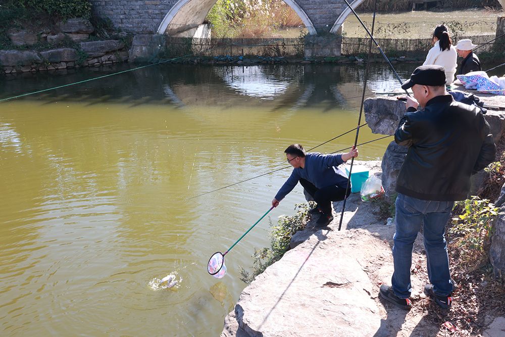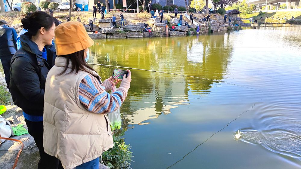 寒冷的天气也阻挡不住钓鱼爱好者的热情,大家早早地从四面八方汇聚到垂钓地点,各自选好心仪的钓位,打窝、放竿、上线、调漂、找底、配饵、抛竿……大家兴致勃勃地围在河塘边投入“战斗”。 冬天水凉,鱼儿普遍躲至深水避寒、吃口较轻,钓手的经验技巧和耐心显得尤为重要。资深钓友尽显高手风范,恰到好处地抛竿与提竿,连连上鱼,引发阵阵喝彩。初涉垂钓不久的新手虽不熟练,但仍不急不躁,耐心等待。大家重在参与,享受过程,乐在其中。