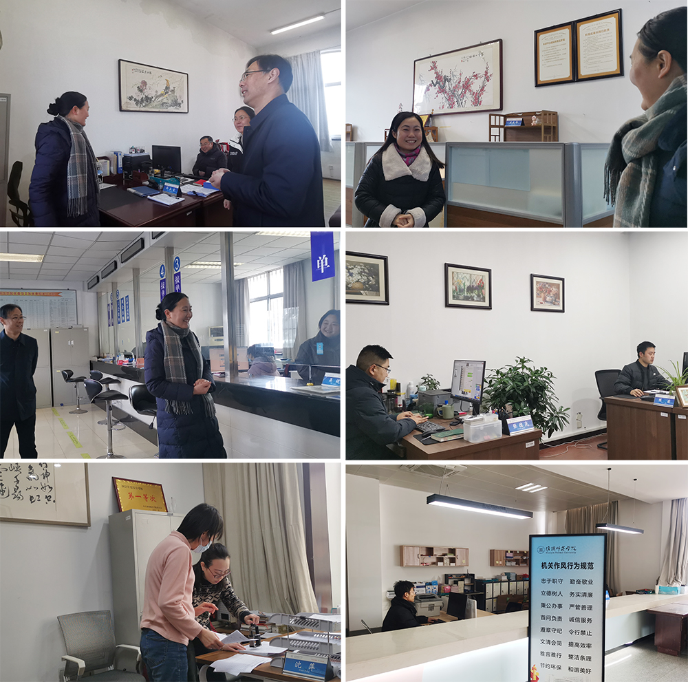 检查组通过深入机关各办公室、会议室、财务处服务大厅等地走访,就到岗情况、工作状态、办公环境卫生等情况进行检查发现:机关工作人员能够遵守工作纪律,按时到岗,置牌上岗,有些同志8点前就已到校工作。机关各科室岗位职责明确,工作流程公开,工作程序规范,工作环境整洁,秩序井然,服务师生态度热情,营造了良好的作风建设氛围,充分展现了机关教职工新学期良好的精神风貌和积极向上的工作氛围。