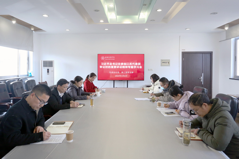 淮师新闻网3月7日电(记者 段婧婧)2024年全国两会正在进行。3月6日下午,党委宣传部、周工部党支部专题学习习近平总书记在参加江苏代表团审议时的重要讲话精神。校党委副书记韩同友出席会议。