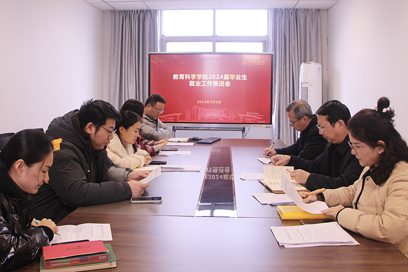 淮师新闻网3月7日电(记者 唐力)为深入贯彻2024届江苏省普通高校毕业生就业创业工作推进会精神,抢抓春季促就业工作关键期,全力推进毕业生就业工作,3月6日下午,教育科学学院召开就业工作推进会。学院领导、2024届毕业班全体班主任、辅导员参加会议,会议由教科院党委书记葛军主持。