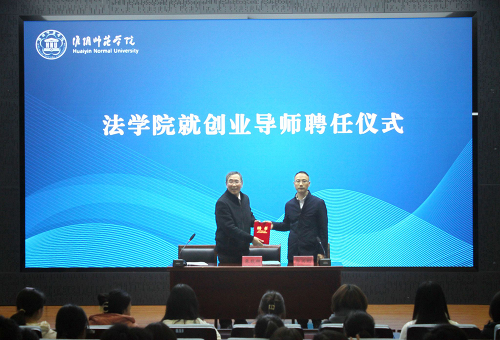 动员会上,郭兴利为张毅辉颁发聘书,聘任张毅辉老师为法学院就创业指导教师。