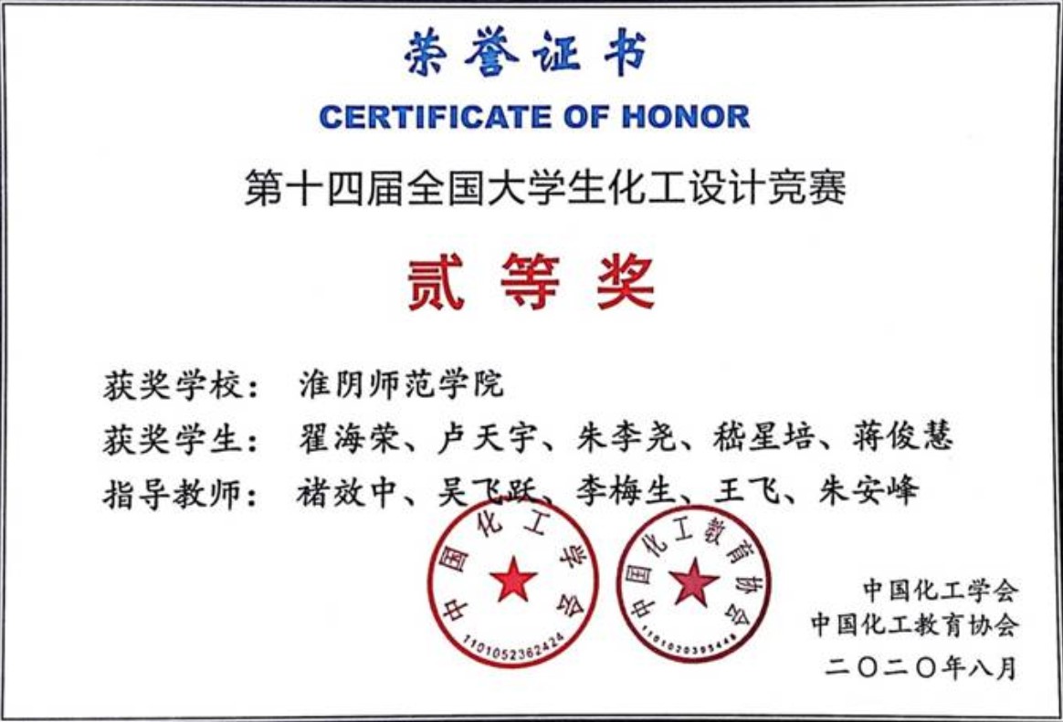 实施“创新创业导师制”,做实科教产教融合,强化实践和创新能力培养。获批大学生实践创新训练计划项目18项、实践创业训练计划5项;《绿卫士——果蔬无冷链绿色流通引领者》获“挑战杯”全国大学生创业计划竞赛银奖,获全国大学生化工设计竞赛二等奖等重要学科竞赛奖项34项,获省普通高校本科优秀毕业设计(论文)三等奖2项。