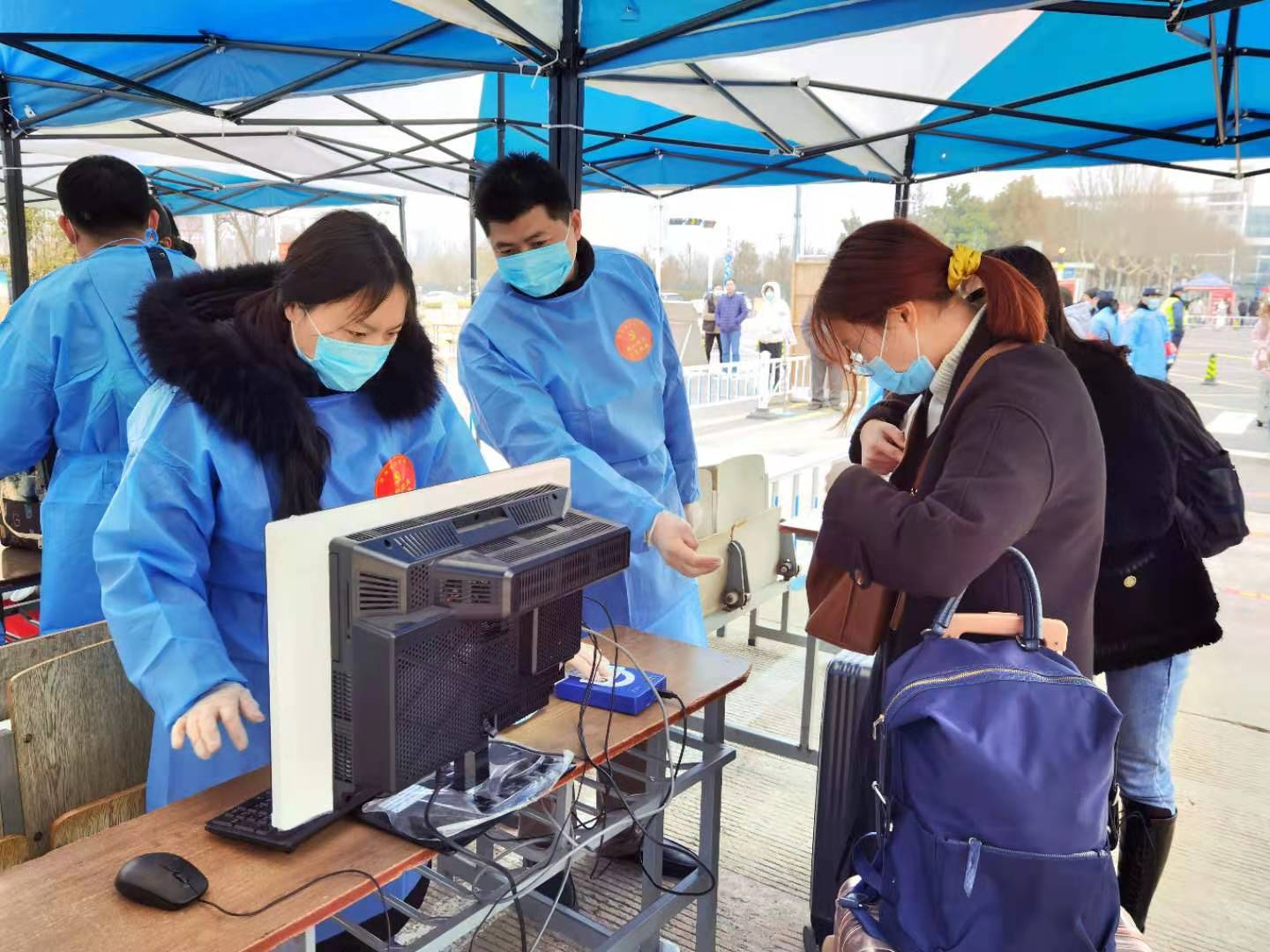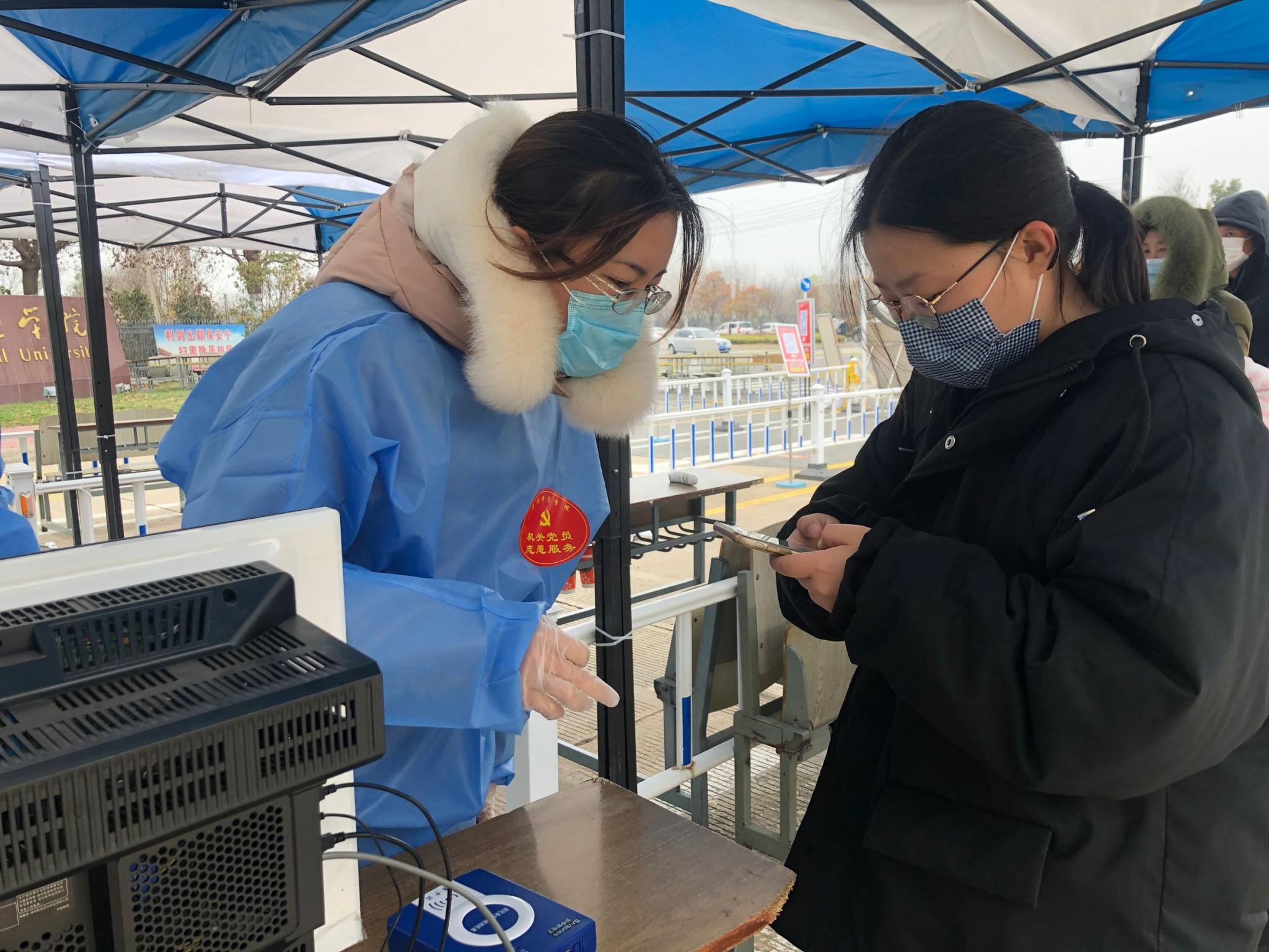 为认真落实学校疫情防控要求,全力确保学生报到工作安全、平稳、有序进行,做好疫情防控,保障校园安全,机关党员志愿者坚守长江路南门、淮河路南门、淮河路北门、交通路南门等疫情防控第一线,发扬不畏艰险、冲锋在前的精神,亮明党员身份,争当防疫先锋,在凛冽的寒风中尽心尽责,无私奉献。在服务现场,志愿者们勇挑重担、不怕苦不怕累、全面细致、热情周到,认真做好家长引导、测量体温、查验健康码、核对身份等工作,主动帮助学生搬运行李。机关多个部门负责人、支部书记带头参与、以身作则,带领党员志愿者筑牢守护之墙,以责任担当铸就最牢防线。