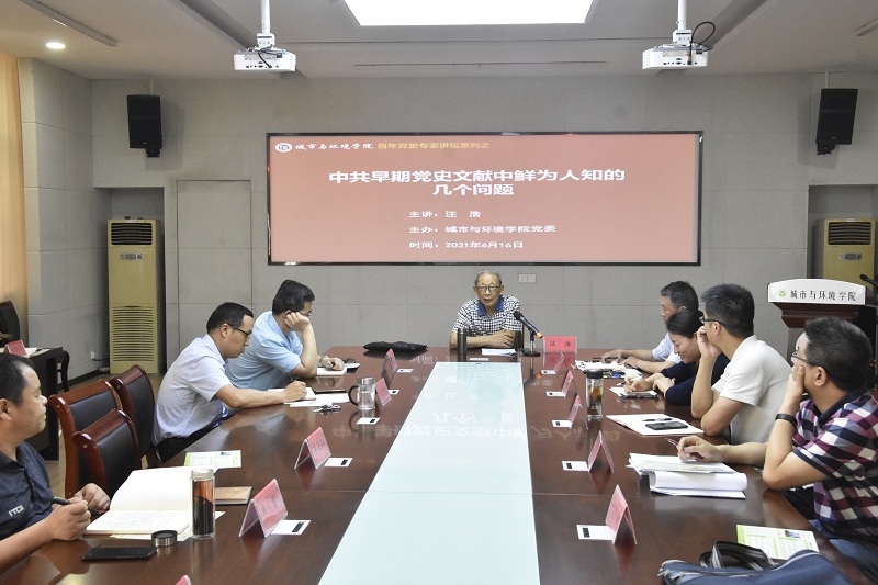 淮师新闻网6月28日电(记者 陈苏皖 姬广建)为扎实有序开展好党史学习教育,推进习近平新时代中国特色社会主义思想入脑入心,城环学院持续开展百年党史专家讲坛活动。近日,城环学院邀请淮师原副院长汪浩、校工会主席金钊为师生党员作专题报告。院党委书记姜于主持报告会,学院全体师生党员参加学习。